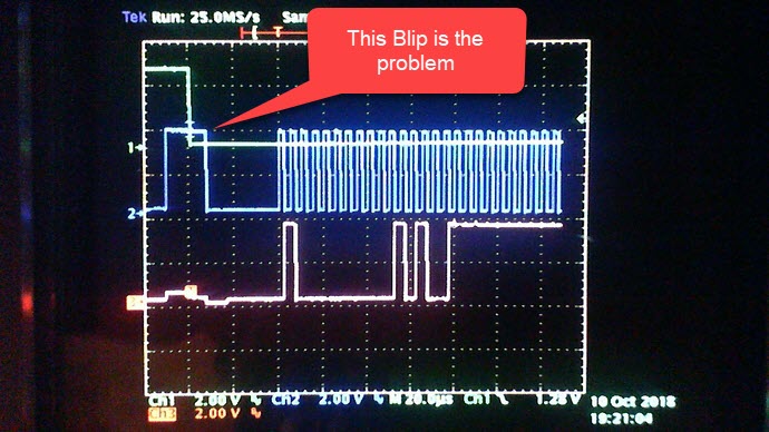 Here is the scope capture running the same python code on the Neo Core2, which works fine, as can bee seen here.