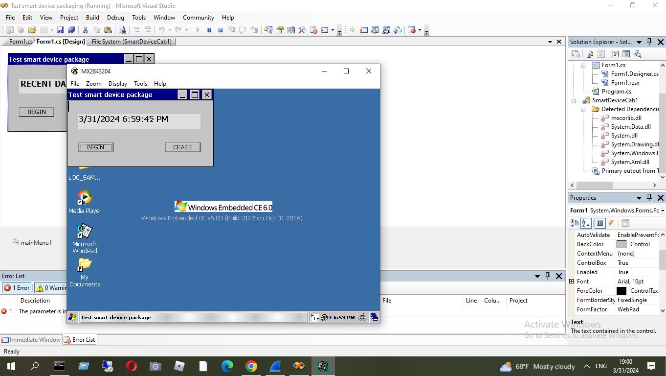 The SmartDeviceCab1 window popped up and notified me: There is no application associated with Smart Device Cab 1.