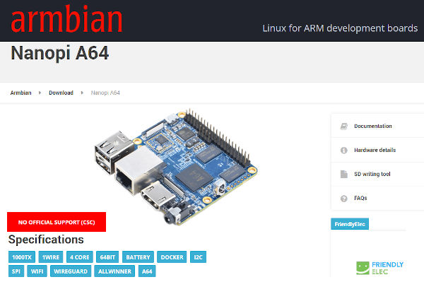 https://www.armbian.com/nanopi-a64/