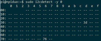pi@npiduo:~$ sudo i2cdetect -y 0