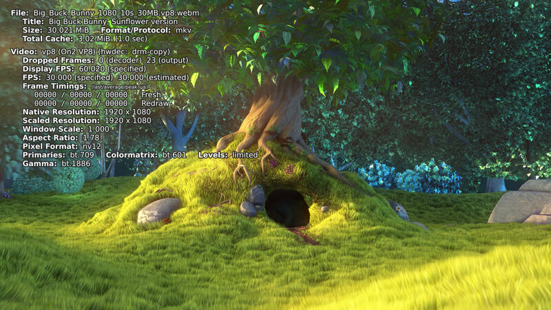 Now also applied LibreELEC kernel patches and rebuild ffmpeg with v4l2-request-hwaccel support. gst-play-1.0, ffplay and mpv now play bbb_sunflower_1080p_30fps_normal.mp4 with similar achievement.