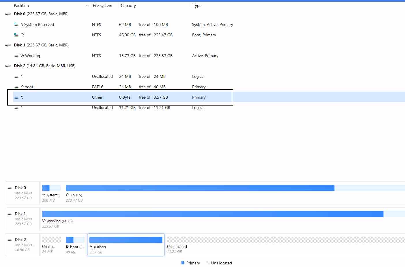 I'm attaching a screen shot of the EaseUS Partition Master.
