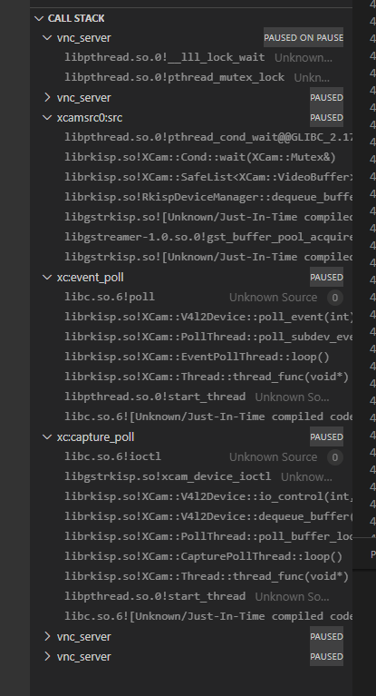 0:00:39.419388247  5601 0x55ac20dc00 INFO   GST_STATES gstelement.c:2651:gst_element_continue_state:<xcamsrc0> committing state from PLAYING to PAUSED, pending NULL, next READY